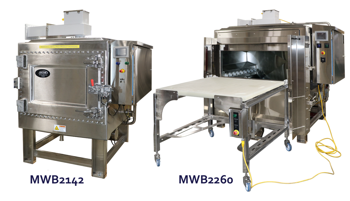 AMTek’s batch microwave systems are perfect for small, medium, or large scale operations. They offer the speed, power, efficiency, and potential for customization that a continuous belt system offers, without the larger equipment footprint and price tag. When used for tempering, a batch system can provide the opportunity to improve the quality of your product and maximize yields by minimizing drip loss. Aside from tempering, AMTek’s batch systems are being used in a diverse range of applications, from cooking and drying, to high temperature melting and glue setting. The control software is customizable to your process to produce precise results every time.